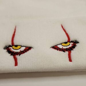 NWOT Pennywise adult unisex white beanie with embroidered Pennywise eyes on it, only out of bag for pictures.