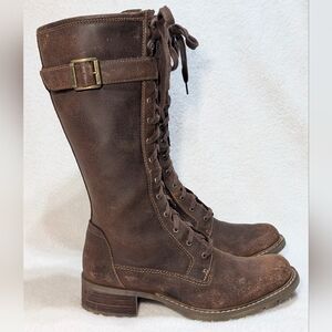Timberland Women's 7.5 Tobacco Brown Lace-Up Full Zip Leather Mid Calf Boots