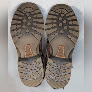 Distressed genuine leather upper with a tobacco brown finish.