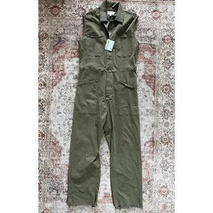 Frame Denim Le Service Sleeveless Wide Leg Green Jumpsuit Womens Size XL NWT