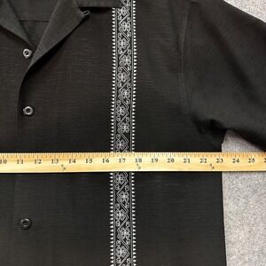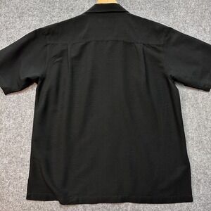 Paradise Blue Shirt Mens L 100% Silk Black with White Guayabera Rockabilly Style