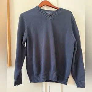 Cozy and classic navy Lands’ End Drifter V-neck sweater, made from 100% soft cotton. Perfect for layering or wearing on its own. In good pre-owned condition with minimal signs of wear. Timeless style for everyday casual or workwear.