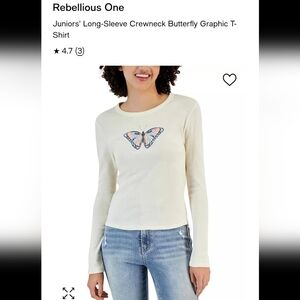 LOT of 2 Tops Rebellious One from Macy's Graphic Tees Junior's XL or Women's L