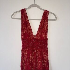 NWOT, Nightcap x Free People, Fleur Lace Jumpsuit Red V-neck XS (1)