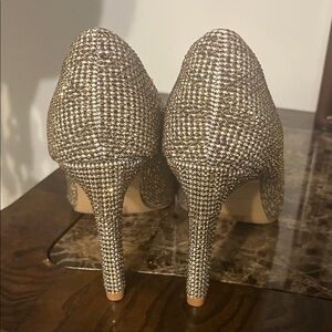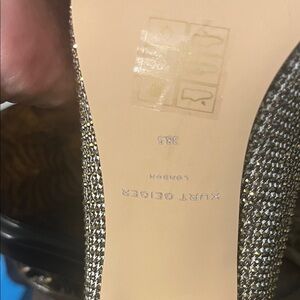 Elegant Kurt Geiger heels with a textured design. Features bold gold tips. Perfect for any occasion. New without tag or box