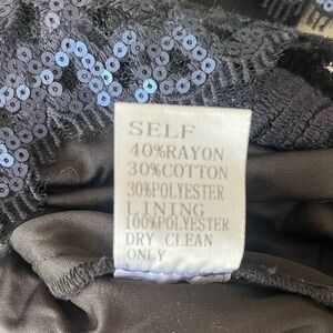 Tadashi Shoji Sequin Lace Banded Navy Black Sheath Cocktail Dress Whimsigoth