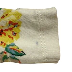 Adorable and cozy Joules “Little Joules” one-piece footed sleeper in the Razzmatazz floral print. White background with pink, yellow, and green watercolor-style florals. Full front snap closure with a cheerful yellow snap accent. Yellow striped feet and embroidered Joules hare logo add extra charm.
