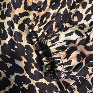 Stunning GANNI leopard-print blouse crafted from a luxurious 92% silk / 8% elastane satin-finish fabric. Features signature covered buttons down the front, soft puff sleeves, and a flattering, slightly structured silhouette.