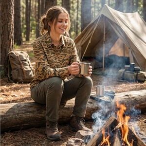 United by Blue Women's Camo Button Down Shirt Hemp & Organic Cotton Size: Medium