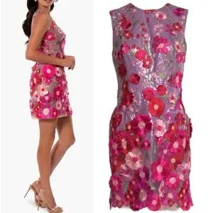 HELSI Miranda 3D Floral Applique Sequin Sleeveless Shift Women’s Mini Dress Medium NEW