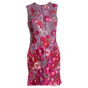 HELSI Miranda 3D Floral Applique Sequin Sleeveless Shift Mini Dress Medium NEW