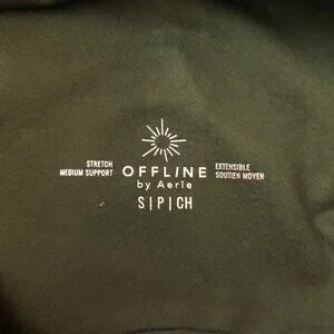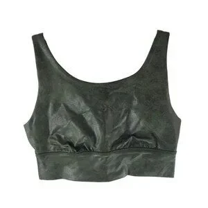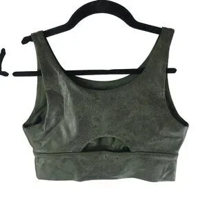 Aerie Offline Dark Green Distressed Faux Leather Sports Bra Keyhole Back S