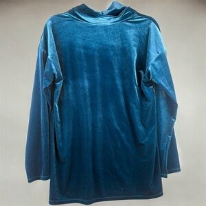 Jones New York Signature Cowl Neck Velvet Long Sleeve Top in Blue Small