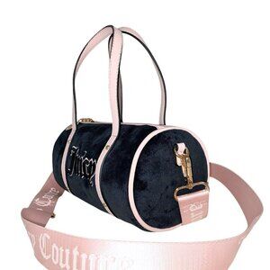 Juicy Couture Queen Of Everything Black Velvet Pink Crossbody Bag NWT