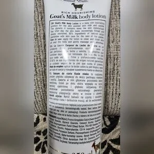 Indulge in the rich nourishment of Goat's Milk Body Lotion. This white lotion is crafted with 92% natural ingredients to hydrate and revitalize your skin.