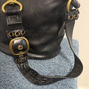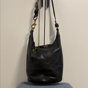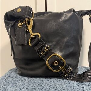 VTG Coach Bleeker Tattersall Black Leather Bucket Tote Shoulder