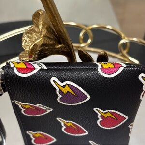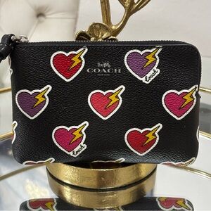 Coach Women’s Small Corner Zip Wristlet Heart Bolt Print Black Multi