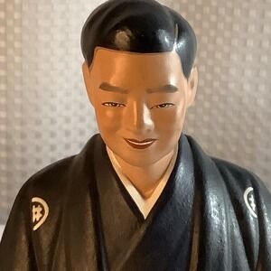 Hakata Urasaki Doll Japanese Young Man Kneeling on Cushion Clay Figurine VTG
