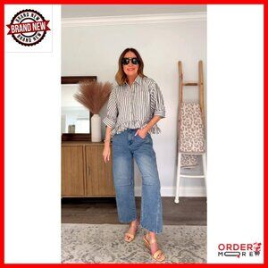 Brand new, never worn, and in flawless condition — this chic cropped button-down shirt offers a relaxed fit with a playful ruffle hem and 3/4 length sleeves. Perfect for creating stylish summer-to-fall looks, it's a versatile piece that transitions effortlessly from casual outings to dressier occasions.
