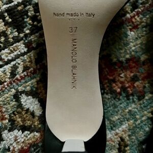 Chic Manolo Blahnik heels in black and cream with button accents. (Only worn once.)
