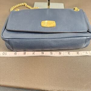 Michael Kors Women's Jet Set Chain Leather Small Shoulder Flap Navy Blue Bag