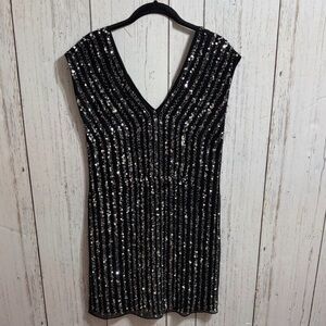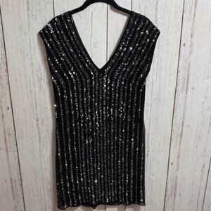 Dazzle in this chic mini dress. Features shimmering sequins. Ideal for evening events.