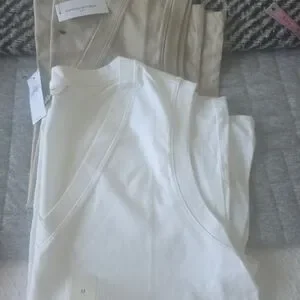 Set of white and tan sleeveless tops. Perfect for layering or casual wear. 25 for two