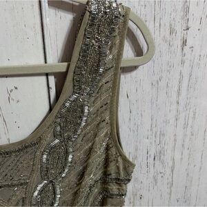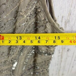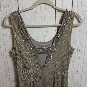 Elegant dress with intricate sequin and hand-beaded detailing. Sleeveless design. Perfect for special occasions. Stretchy.