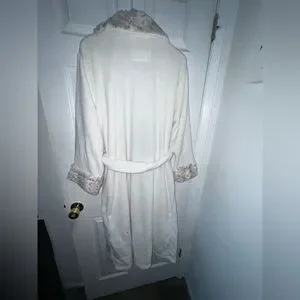 Elegant white robe with soft brown trim. Ideal for relaxation. Carole Hochman White Women Robe Size Large. Two Black Spot See PIC SKU-W172
