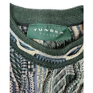 1990s VTG TUNDRA 3D KNIT COTTON SWEATER L Coogi Canada Biggie 90s Hip Hop Green