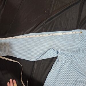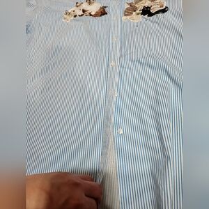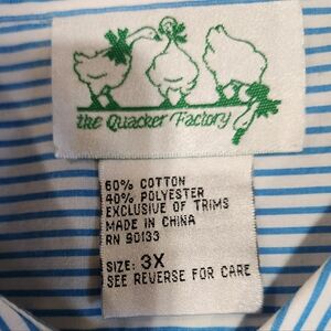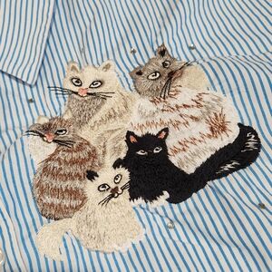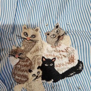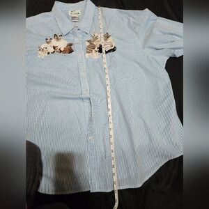 Charming blue striped shirt with playful cat embroidery. Ideal for casual wear. Size 3x no rips or stains all buttons intact. From The Quacker Factory brand