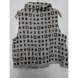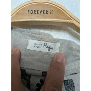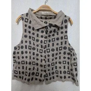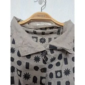 Excellent pre-loved condition Cotton house Aya linen button down shirt sleeve top for women size Medium. With embroidered designs and pockets on the sides.