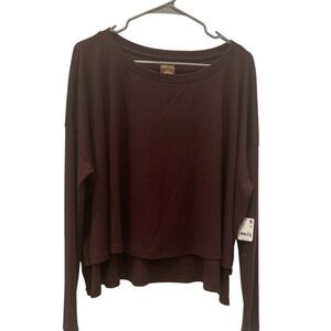 Free People Long Sleeves Oversized High Low Top in Brown.Size L