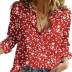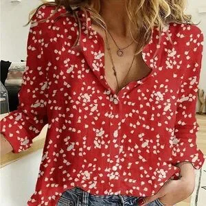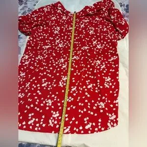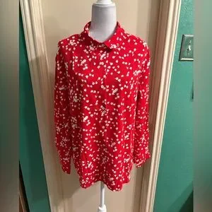 Elevate your style with this chic red floral button down blouse. Perfect for any occasion, this top offers both comfort and elegance. Tags are a little damaged, please see last 3 pictures. Feel free to ask me any questions.