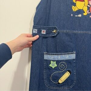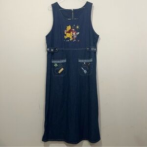 VTG Disney Catalog Winnie the Pooh Denim Dress Jumper Overall Womens Sz XL 90s