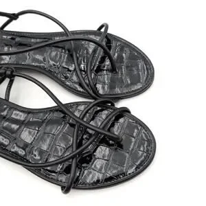 Slender cord straps elegantly encase your foot in this minimalist sandal that's complete with a croc-embossed lining.