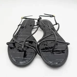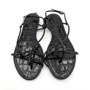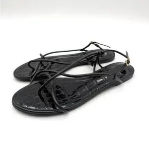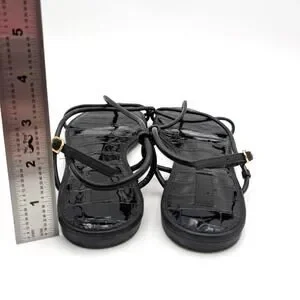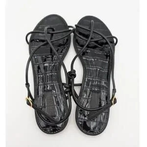 Schutz Malta Leather Strappy Flat Sandals Women's Black Size US10B EU40