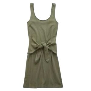 Aerie Tie Front Tank Dress Size XL Green Ribbed NWT