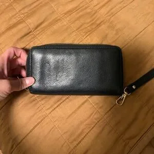Classic zip-around style with wrist strap. Zipper works well and opens/closes smoothly.