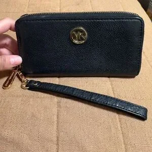 Michael Kors Black Leather Wristlet Wallet | Zip Around