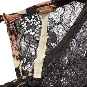 Free People Daphne Floral Lace Sheer Smocked Top Midnight Combo Boho Chic XS EUC
