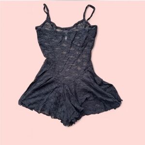 This is such a fun and sexy find! Make it chic or make it naughty! Very versatile! Features drop waist, pleated “skirt” (the lower part are actually shorts) and stretchy black lace material. Please see all photos and check measurements!! I’m not sure of the size but guessing XS/S. Please note that up close tiny little bits of elastic are visible throughout. You can see some of it on the close up of the tag. It was hard to capture on my camera but please let me know if you’d like more details. Clean and ready to wear!