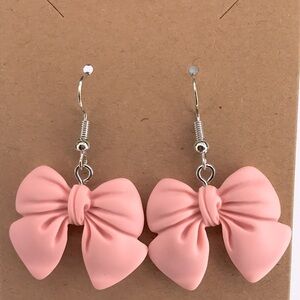 Charming pink bow earrings with silver hooks. Perfect for adding a playful touch to any outfit.