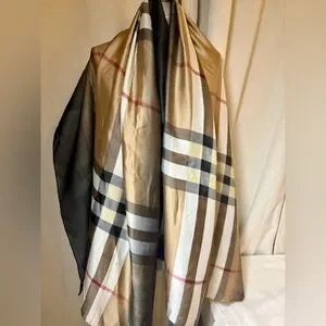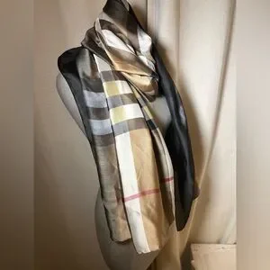 • Style: wrap, shawl, blanket scarf feel (but lightweight silk), classic/preppy/neutral