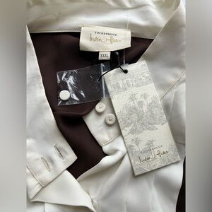 NWT TUCKERNUCK INDIA HICKS Chocolate & Ivory Grove Pleated Blouse XXXL 3X