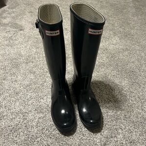 Sleek black boots by Hunter. Ideal for wet weather. ORIGINAL GLOSS TALL w23616
