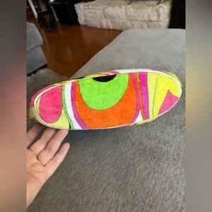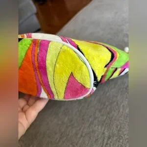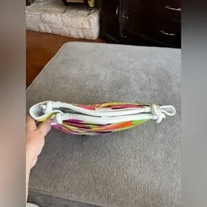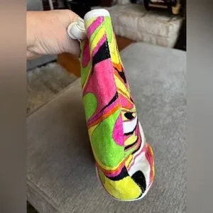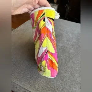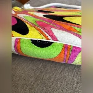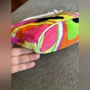 Excellent vintage condition. Colorful Terry cloth with leather trim. Authenticated. Beautiful design.