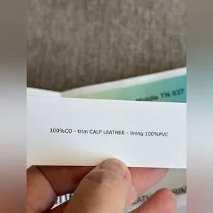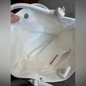 There is one spot one the exterior of the bag (pictured) and very minor discoloration on the piping in a couple of places (also pictured).