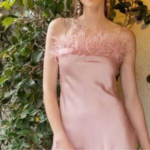 Chic strapless dress in soft pink. Features elegant feather trim. Ideal for special occasions, girls night, wedding reception, tea party. Be the girl they look at!! 💕🩷💕🩷