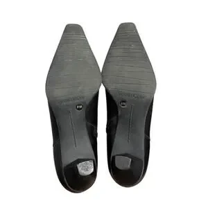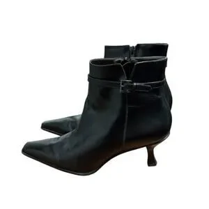 Antonio Melani Black Leather Pointed Toe Kitten Heel Ankle Boots Size 8.5